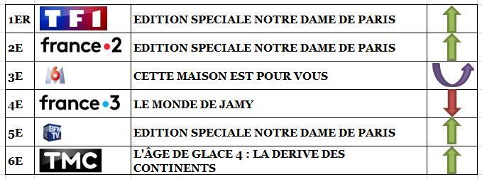 Un point sur les audiences de la soirée du 15/04/2019 :