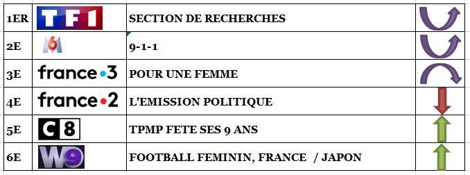En résumé, TF1 et M6 réalisent de bons scores, France 3 déçoit, France 2 est faible, C8 domine la TNT.