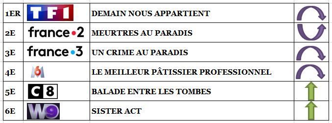 En résumé, TF1, France 3 et M6 réalisent des scores moyens, France 2 est à un niveau convenable, C8 domine la TNT.