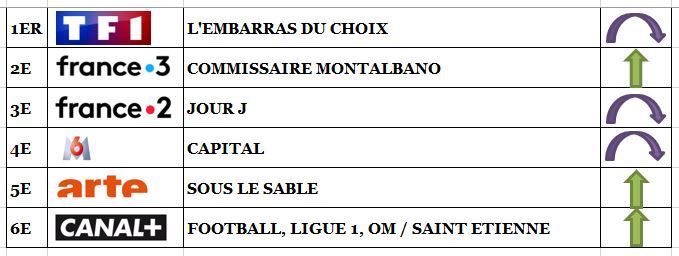 En résumé, TF1, France 2 et M6 déçoivent, France 3 atteint une belle performance, Arte et Canal + cartonnent, 6ter domine la TNT.