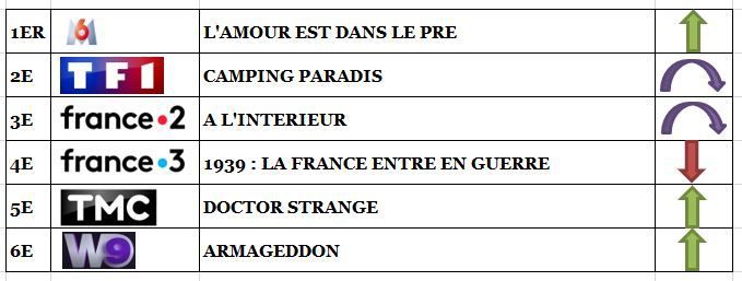En résumé, M6 cartonne, TF1 et France 2 déçoivent, France 3 est faible, TMC domine la TNT avec succès.