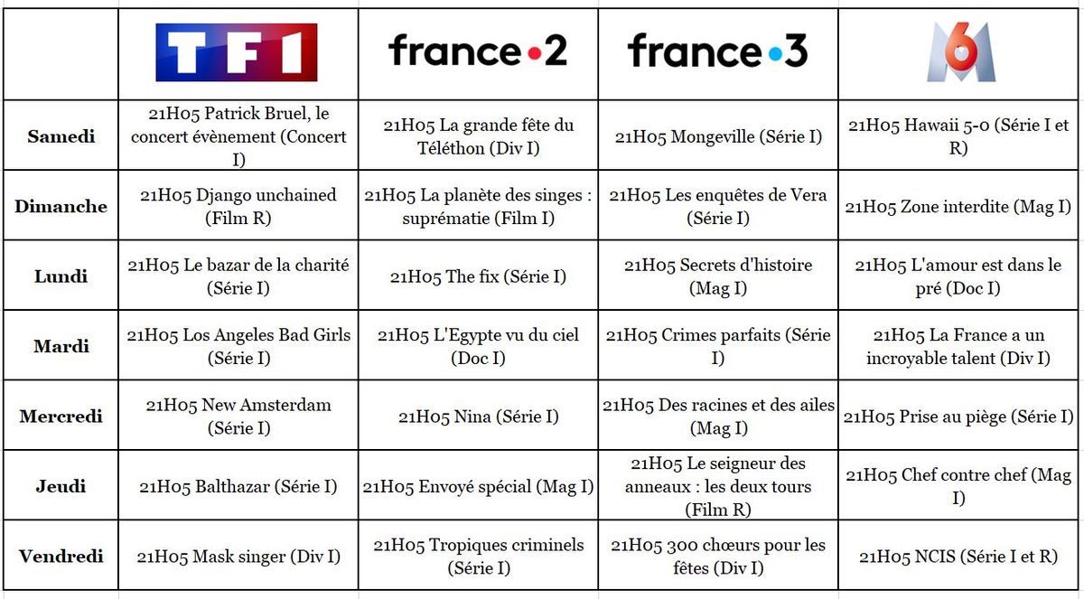 A la télé cette semaine : du 07 au 13/12/2019 sur TF1, France 2, France 3 et M6